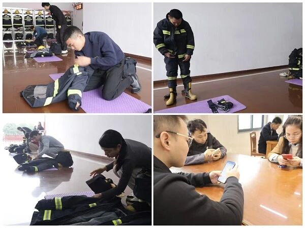 赛场上,参赛队员精神抖擞、身手矫健,防护服穿戴行云流水,水带连接精准高效,灭火器扑救果断利落,每个操作衔接流畅、一气呵成;